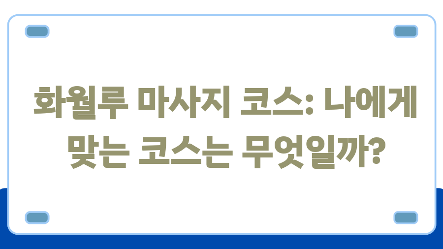 화월루 마사지 코스: 나에게 맞는 코스는 무엇일까?
